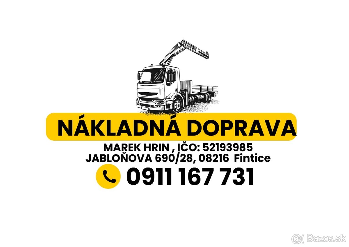 Dobrý deň ponúkam prepravu nákladným vozidlom MAN LE250 trojstranný vyklapac s hydraulickou rukou. Štrky, piesky, polosuchy betón, paletovy tovar, skrátka všetko čo sa vahovo a rozmerovo zmestí. Doprava, Autodoprava, vyklápač, hydraulická ruka, nad 3,5T, 5T.