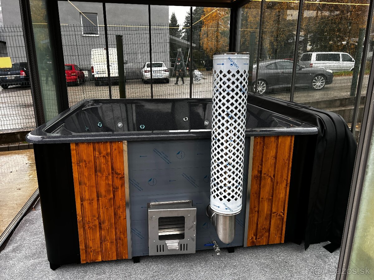 Predám luxusnú hranatú kaďu na drevo s integrovanou pieckou – dokonalé spojenie pohodlia, dizajnu a kvality.