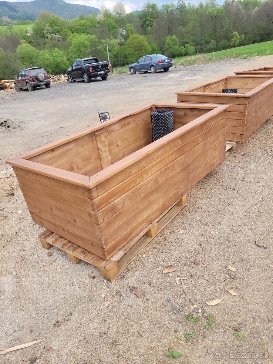 Predám masivné vyvýšené záhony rozmery podľa požiadaviek . Materiál je smreková vrchná prekryvacia doska je dubová.Štandardné rozmery skladom 200x100x60cm.Záhony vieme aj nastriekat s lazúrov možnosť výberu odtieňov .