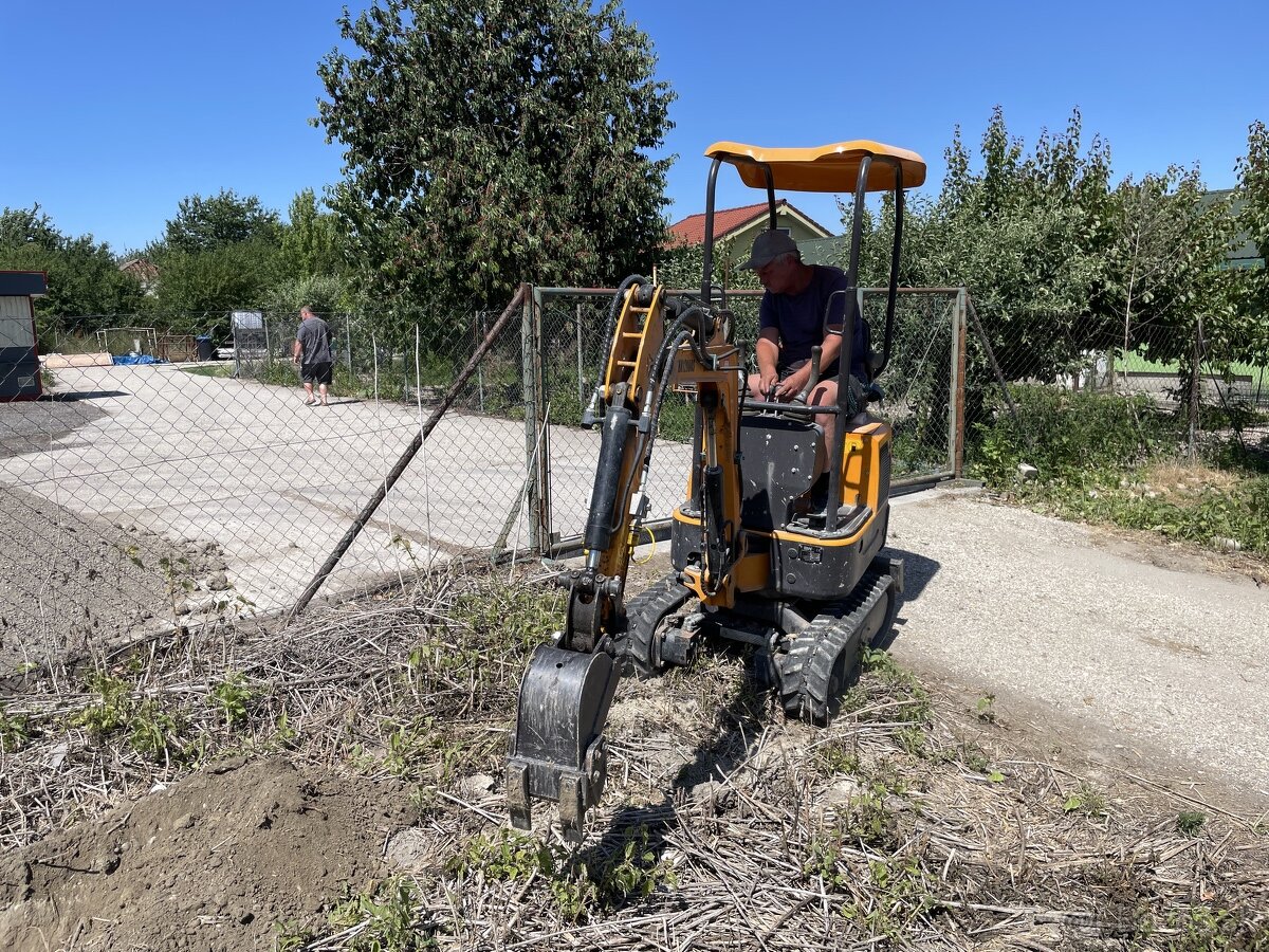 Výkopové a zemné práce minibagrom o váhe 1200 kg a o šírke podvozku 78-96 cm ideálne na prácu v stiesnených priestoroch a úzkych prechodoch kam sa nedostanú veľké stroje.