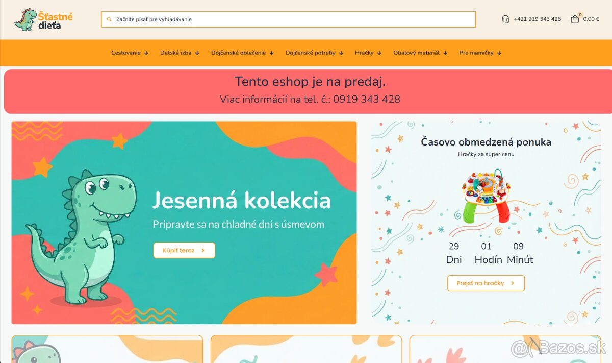 Ponúkam na predaj profesionálne vytvorený internetový obchod s internetovou domenou StastneDieta.sk, zameraný na predaj sortimentu pre deti (kočíky, nábytok, hračky, oblečenie).
