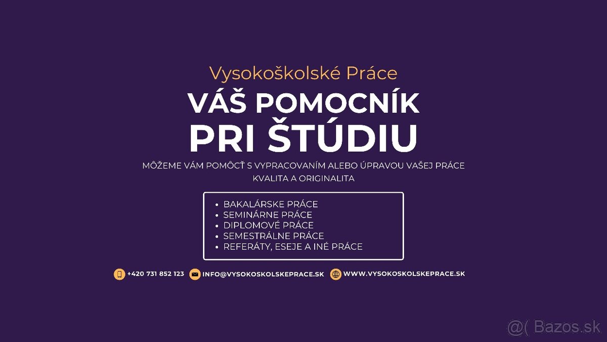 #bakalárska práca, #atestačné práce, #bakalársky projekt, #zadanie, #zámer, #LLM, #MPA, #MBA, #formátovanie, #korektúra, #dizertačná práca, #dizertačná práca, #literárne rešerše, #zdroje, #pedagogické minimum #asistent pedagóga #aplikačná štúdia, #prehľadová štúdia, #prípadová štúdia, #rigorózna práca, #celoživotné vzdelanie, #prezentácia, #excel, #štatistika, #ročníková práca, #dotazníkové šetrenie, #podnikateľský plán, #referát, #rozbor knihy, #semestrálna práca, #skupinová práca, #profesná štúdia, #zápočtová # #úprava práce, #osnova, #citácia, #abstrakt, #anotácia #otázky, #maturitná práca, #štátnice, #zdroje, #excel, #word