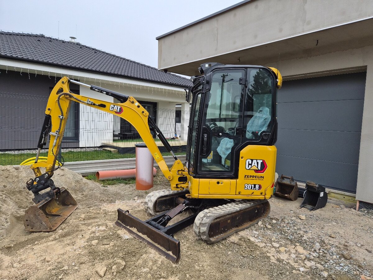 Ponúkam zemné a výkopové práce – minibager Cat 301.8 a mininakladač.