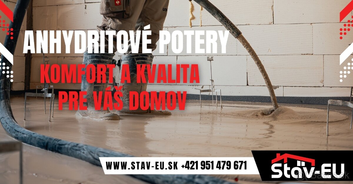 Hľadáte spoľahlivého partnera pre Vašu stavbu? Stav-EU s.r.o. je najväčší výrobca a realizátor anhydritových poterov na východnom Slovensku. Poter vyrábame priamo na stavbe pomocou Transmixu. Rýchlo, čisto, bez odpadu.