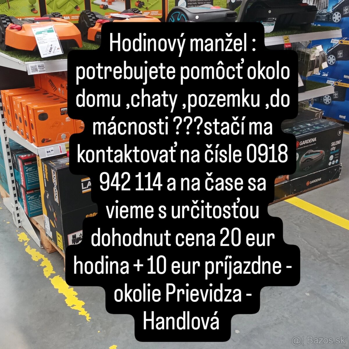 Kontaktujte ma na čísle 0918 942 114 ;Hodinová sadzba 20 eur plus príjazdne 10 eur Garantujem : spoľahlivosť ,dochvíľnosť.
