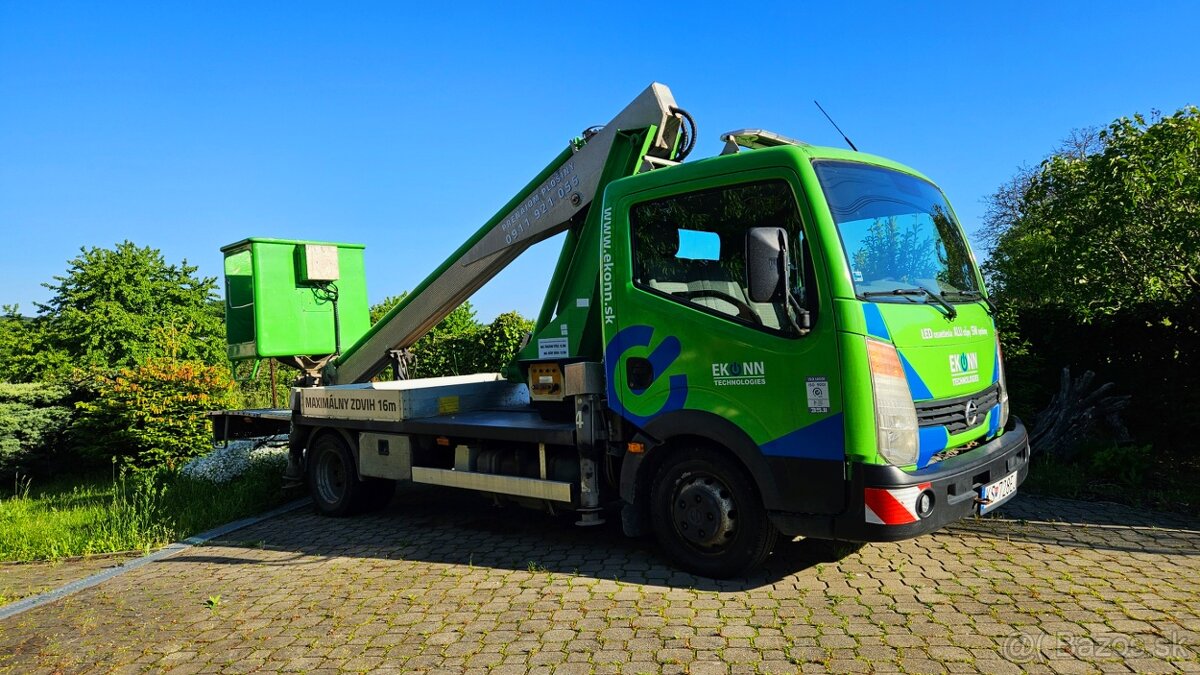 Naša spoločnosť Vám ponúka prenájom pracovnej plošiny s dosahom 16m na automobilovom podvozku NISSAN CABSTAR.