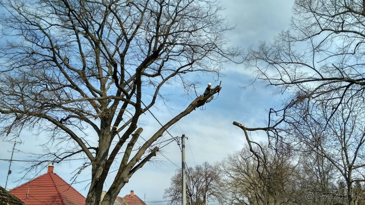 Pílenie rizikových stromov po častiach s použitím horolezeckej techniky, nad strechou, plotom, eletrickým vedením, pomníkom, alebo len v záhrade.
