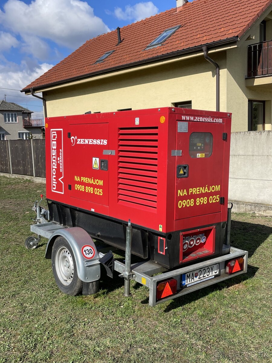 Prenajmem dieslový agregát (elektrocentrála, generator) s výkonom 55 kVA (45kW) Vhodná pri realizácii strojových omietok, pri výpadku elektriny, k stavebám, festivalom atď.