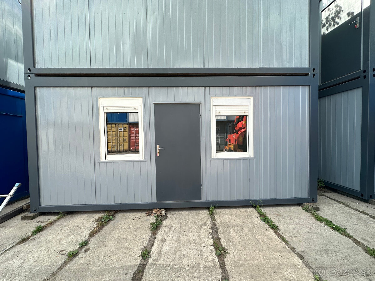 Kontajner stavebná bunka B15 - šedá - [25.1. 2026]Repasovaný kancelársky kontajner. Vhodný ako kancelárske priestory, záhradné chatka, priestory pre zamestnancov alebo ako modulárna stavba. Rozmery: 6,05 m x 2,44 x 2,8 m / 15m2 Stav ako na fotke.