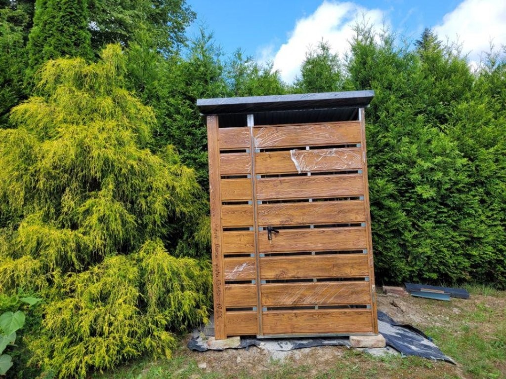 farba panelov na stenách je podobná drevu dub zlatý, farba strechy grafitová RAL 7016 matná