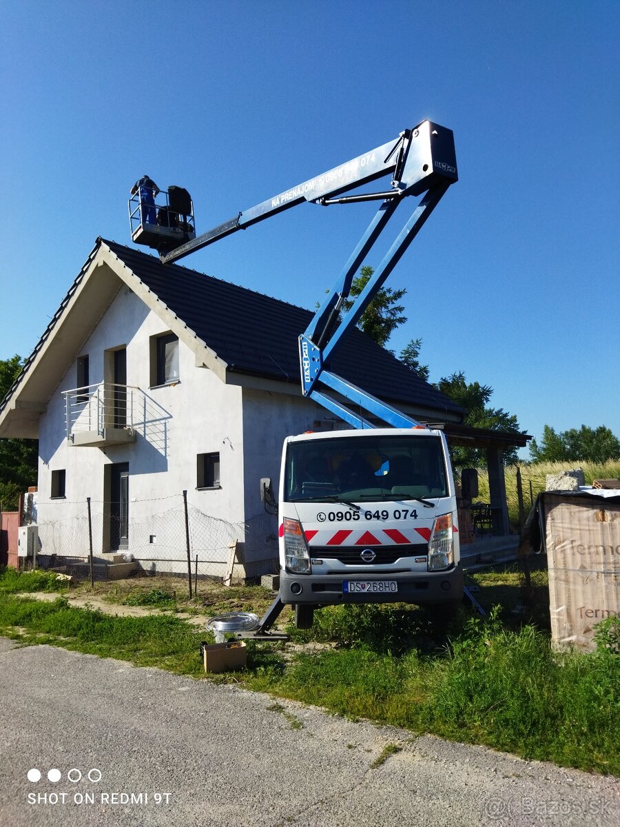 Prenájom plošiny do výšky 20m.Max.pracovná výška 20m. Max.bočný dosah 9m.