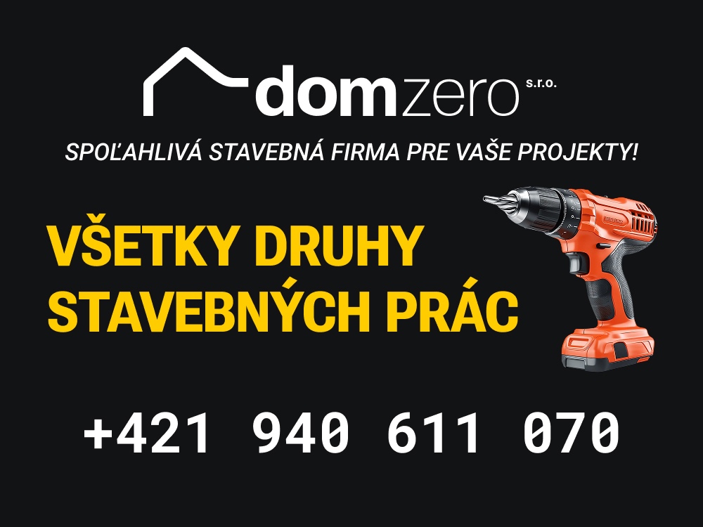 V prípade záujmu nás neváhajte kontaktovať na telefónnom čísle +421 940 611 070 alebo nám napíšte e-mailom kontakty@domzero.sk. Naša webová stránka: domzero.sk