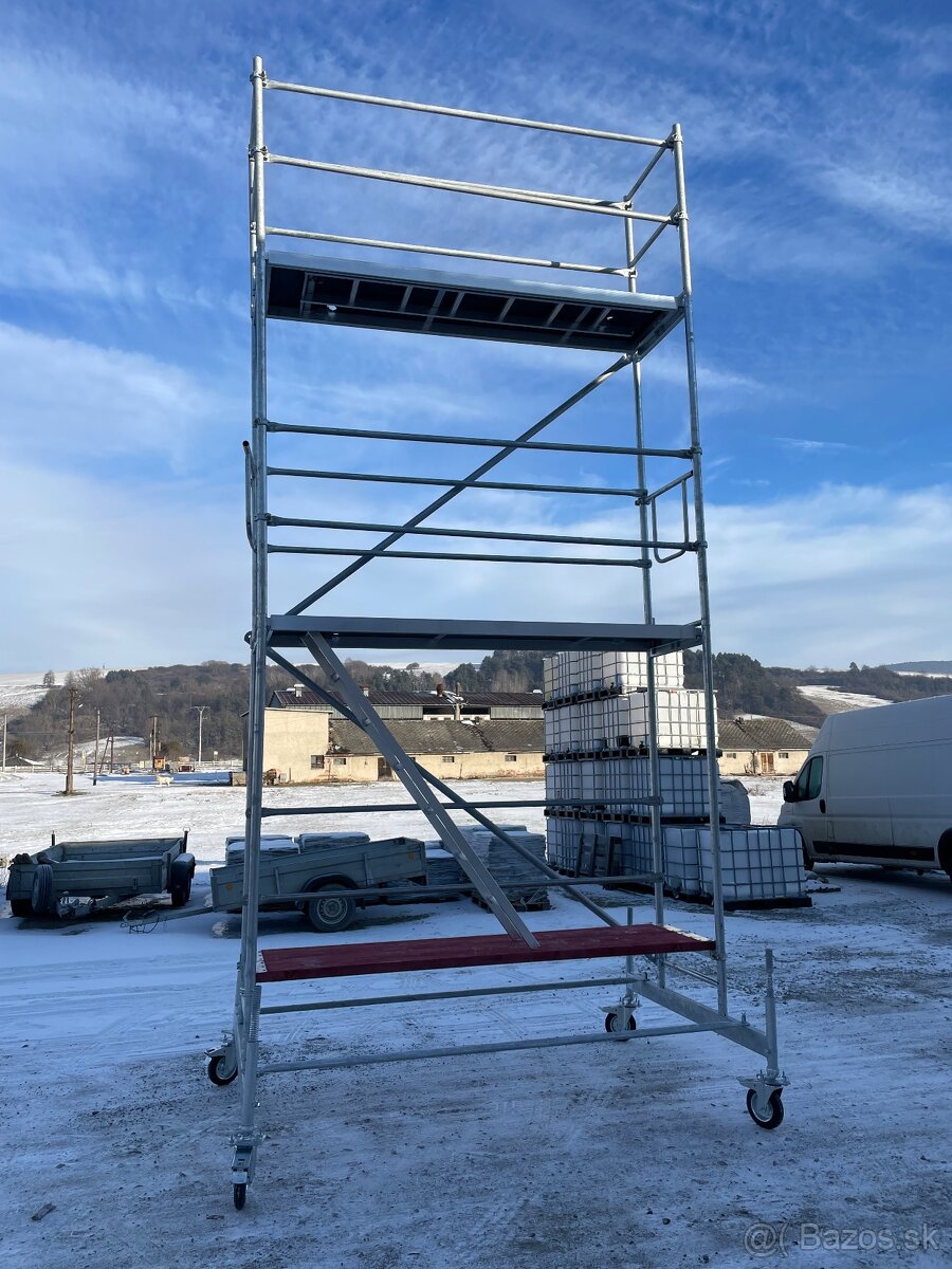 Pojazdné hliníkové lešenie DOPRAVA ZADARMO - TOP - [10.3. 2026]Šírka rámu – 0,85 m (pre 1 podlážku) a šírka rámu – 1,45 m (pre 2 podlážky vedľa seba)
