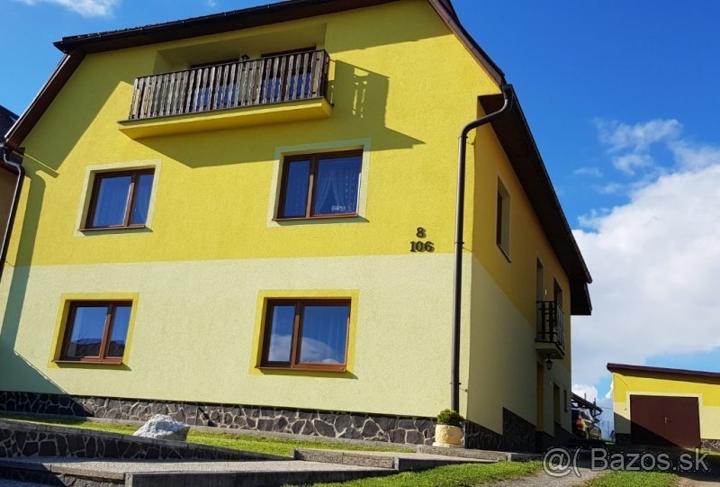 Celoročne Vám ponúkame ubytovanie v priestrannom apartmáne (100 m2) s kapacitou 6 lôžok. Nachádza sa na prízemí rodinného domu, je bezbariérový a disponuje samostatným vchodom. Aj vďaka tomu si u nás užijete dokonalé chvíle pohody a súkromia. O tie sa Vám postará tiež pekná veľká kuchyňa, ktorá je plne vybavená elektrickým sporákom, mikrovlnnou rúrou, rýchlovarnou kanvicou, chladničkou, mrazničkou, kávovarom a jedálenským posedením. Slastný a ničím nerušený spánok si môžete dopriať v jednej z dvoch spální. V oboch máte naporúdzi tri samostatné postele, ktoré sa dajú v prípade potreby spojiť. Moderná kúpeľňa so sprchovacím kútom, práčkou a toaletou je samozrejmosťou. V celom objekte sme zabezpečili bezplatné WiFi pripojenie na internet.