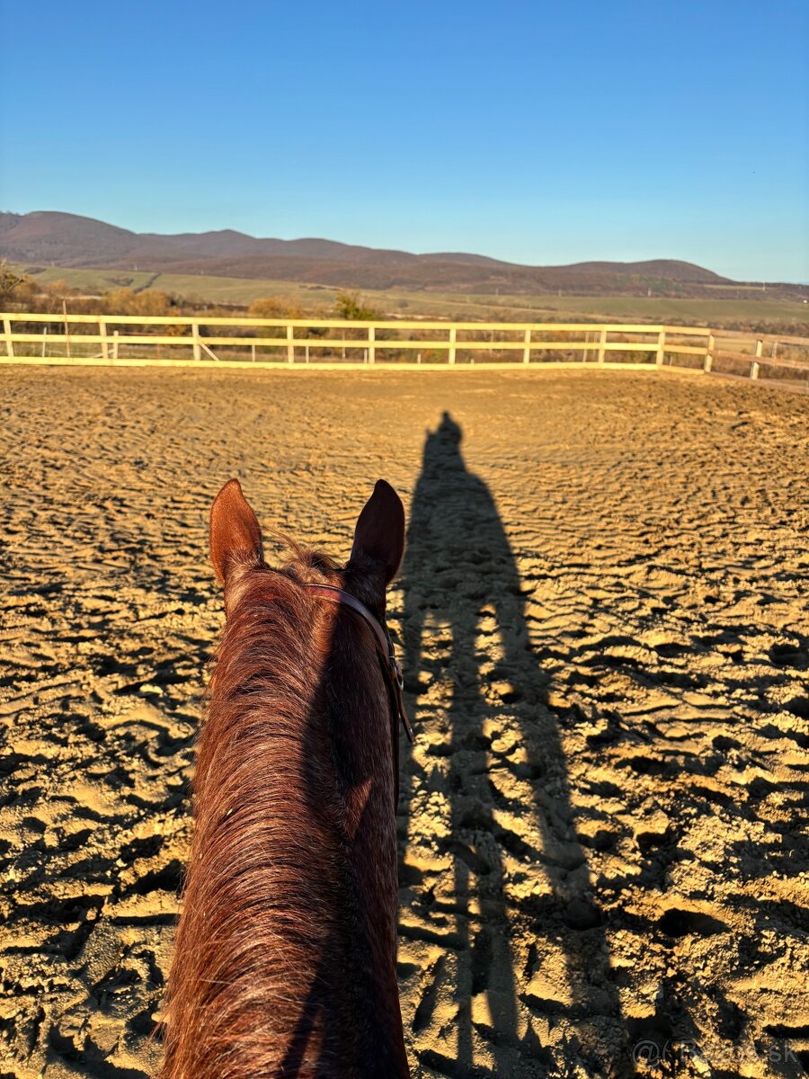 Vonkajšiu pieskovú jazdiaren v rozmere 30x50m a krásne nekonečné terény.