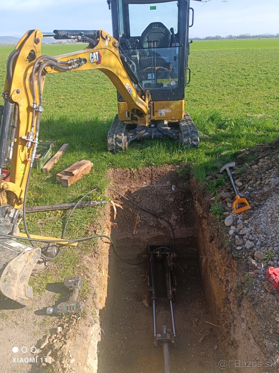 Ponúkam zemné pretláčanie hydraulickým zariadením, pretlak priemeru 7cm vhodný pre elektrické, vodovodné, plynové prípojky a optické káble. Výkopové práce minibagrom.
