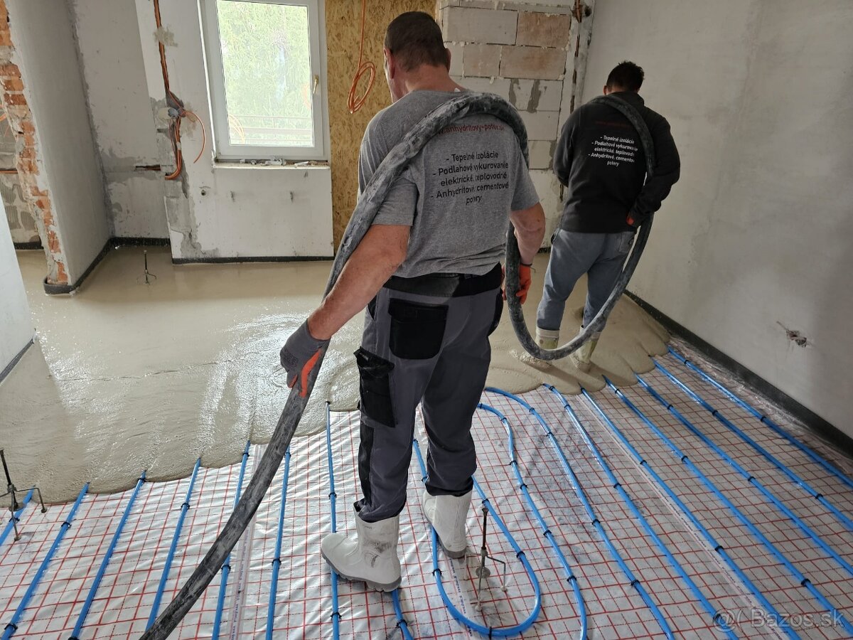 Používáme kvalitný nemecký anhydrit KNAUF- namiešaný priamo na stavbe. Účtovaná vám bude presná spotreba podla počítadla v m kubických.