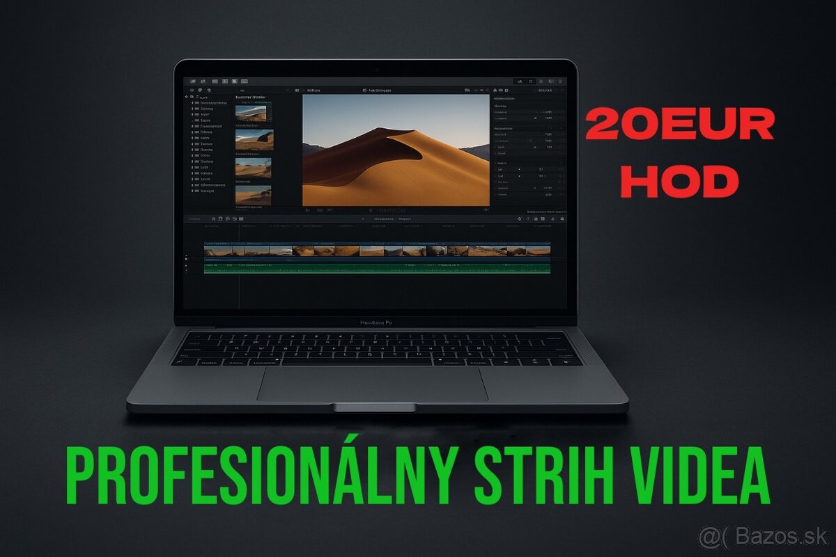 Ponúkam profesionálny strih videa (titles, lower thirds, prechody, intro/outro) s využitím programu Final Cut Pro a nástrojov (Motion, Compressor,Logic pro). Mám viac ako 6 rokov skúseností, pracujem precízne, kreatívne a s dôrazom na detail, dynamiku strihu a pod...