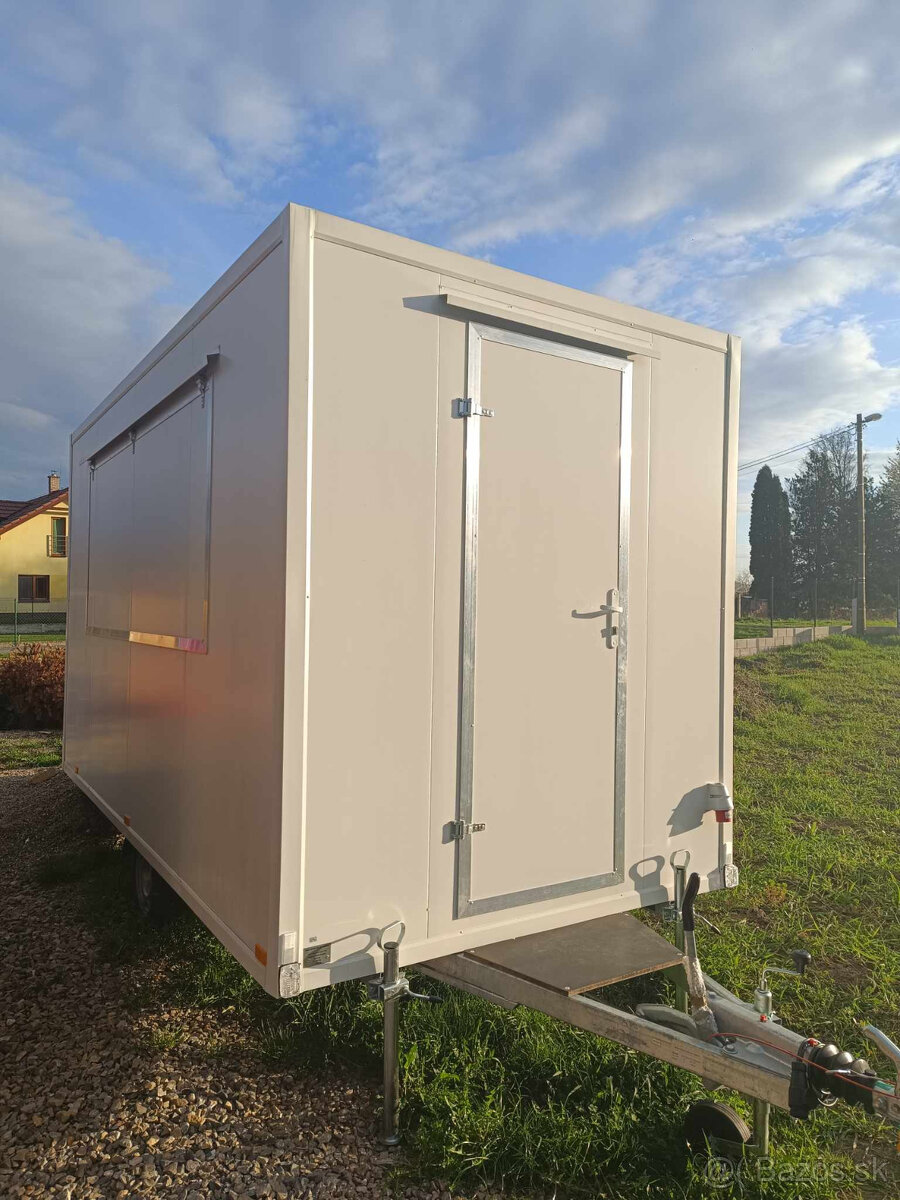 Ponúkame na prenájom nové zariadené pojazdné bufety s rozmermi dlžka 3,5m,šírka 2m a dlžka 4m,šírka 2m.Prevádzková hmotnosť 730kg.Najväčšia prípustná celková hmotnosť 1350kg.Príves je brzdený,platnýmiEčV,povinným zmluvným poistením.Pojazdný bufet je kompletne vybavený v zmysle platných predpisov UVZ.Ma umyvateľné biele steny,nové pracovné dosky aj s nábytkom,prezliekacia skrina,dvojdrez s prietokovým ohrievačom vody,odtok na odpad so zbernou nádobou,kompletná elektroinštalácia s isteným na 220V a 380V,komplet osvetlenie,Veľká chladnička s mraziakom,nový elektrický gril,nová dvojfritéza.
