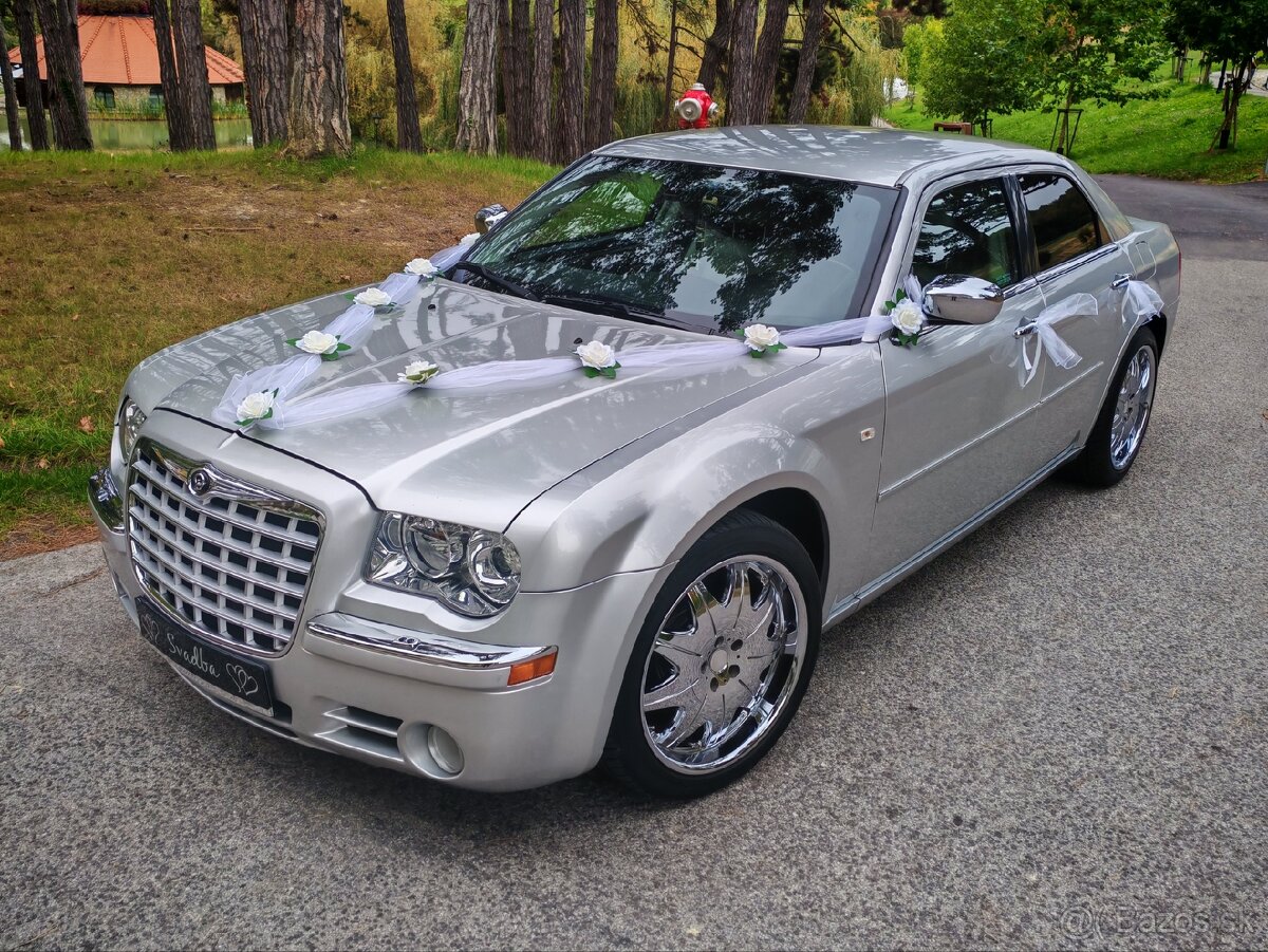 Dizajnovo nezameniteľný, a od všetkých líšiaci sa Chrysler 300c v jasnej striebornej metalíze a s 20 palcovými chrómovými diskami zaujme vždy a všade. S dĺžkou vyše 5m a rázvorom kolies vyše 3m dáva záruku veľmi priestranného a komfortného interiéru, kam sa bez problémov zmestia Vaše svadobné šaty. Vojde sa tam všetko - od nevestiných šiat s trojmetrovou vlečkou až po ženíchovu trému. Miesto, kde bude mať ženích v ten deň posledné slovo :) Majestátne vozidlo pôsobí reprezentatívne a dizajnom zatieni väčšinu limuzín tradičných značiek. V horúcich dňoch oceníte výkonnú 2 zónovú klimatizáciu.