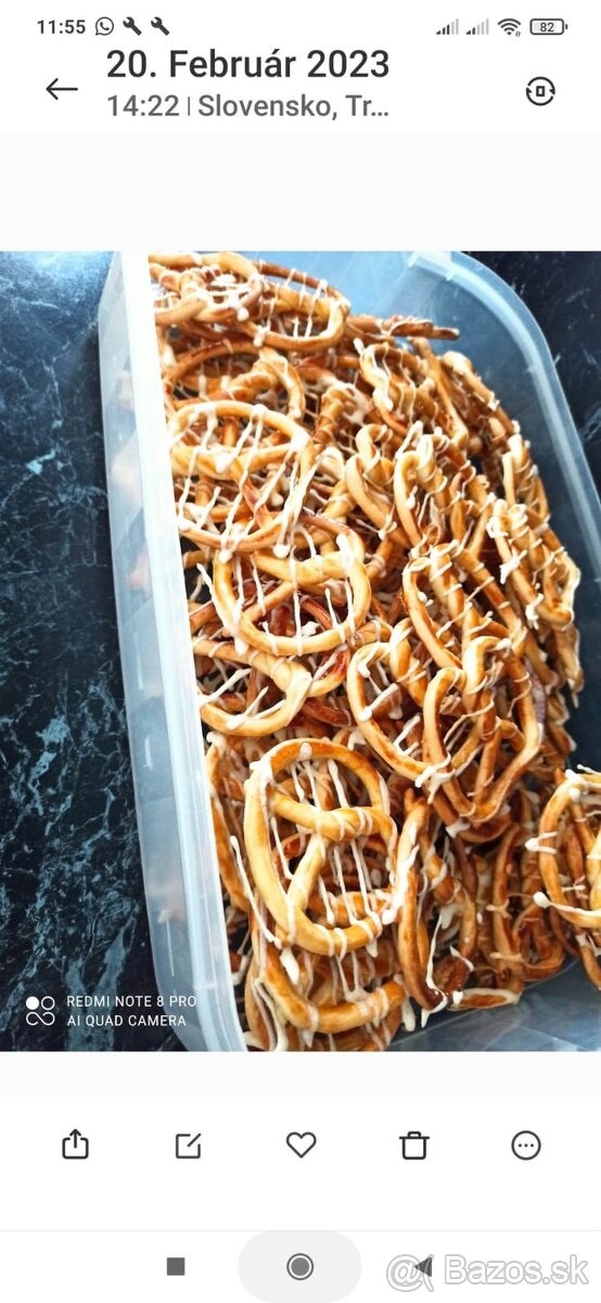 Dobrý deň ponúkam na predaj domáce ručne šúľane praclíky 100ks za 18€, a domáce oplátky slane-prichute syr, bryndza, pikantné,cibuľove,cesnak 100ks 10€