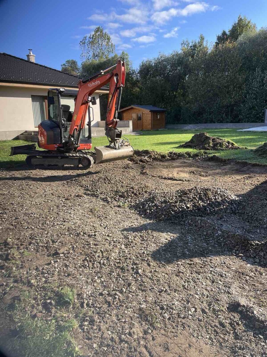 ✅ Stiahnutie lôžka pod zámkovú dlažbu a úprava terénu, záhrad, plôch a lesných porastov