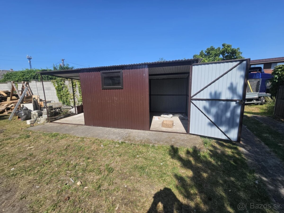 Plechová garáž s prístreškom