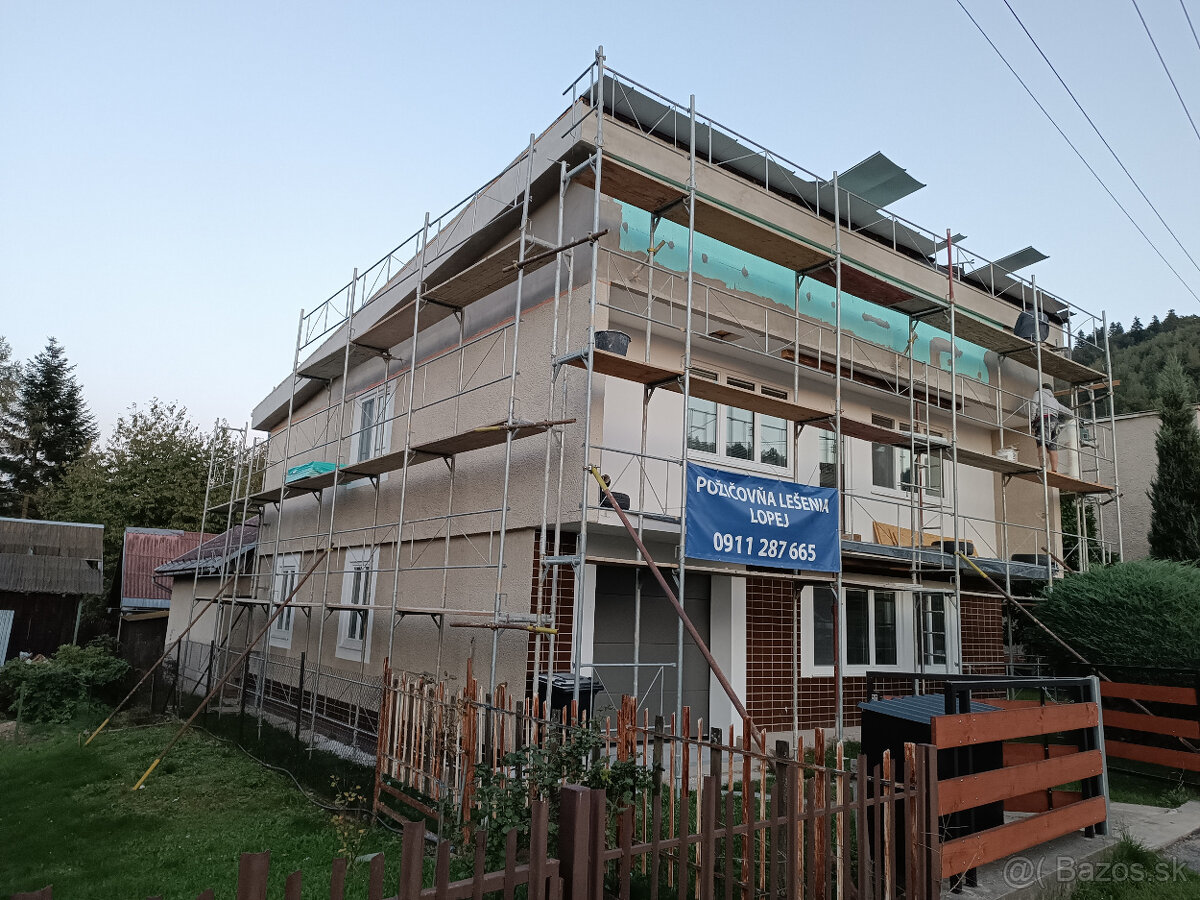 Lesenie na prenájom - zateplenie domu - [24.3. 2026]Prenajmeme fasádne lešenie na zateplenie domu a stavebné práce.