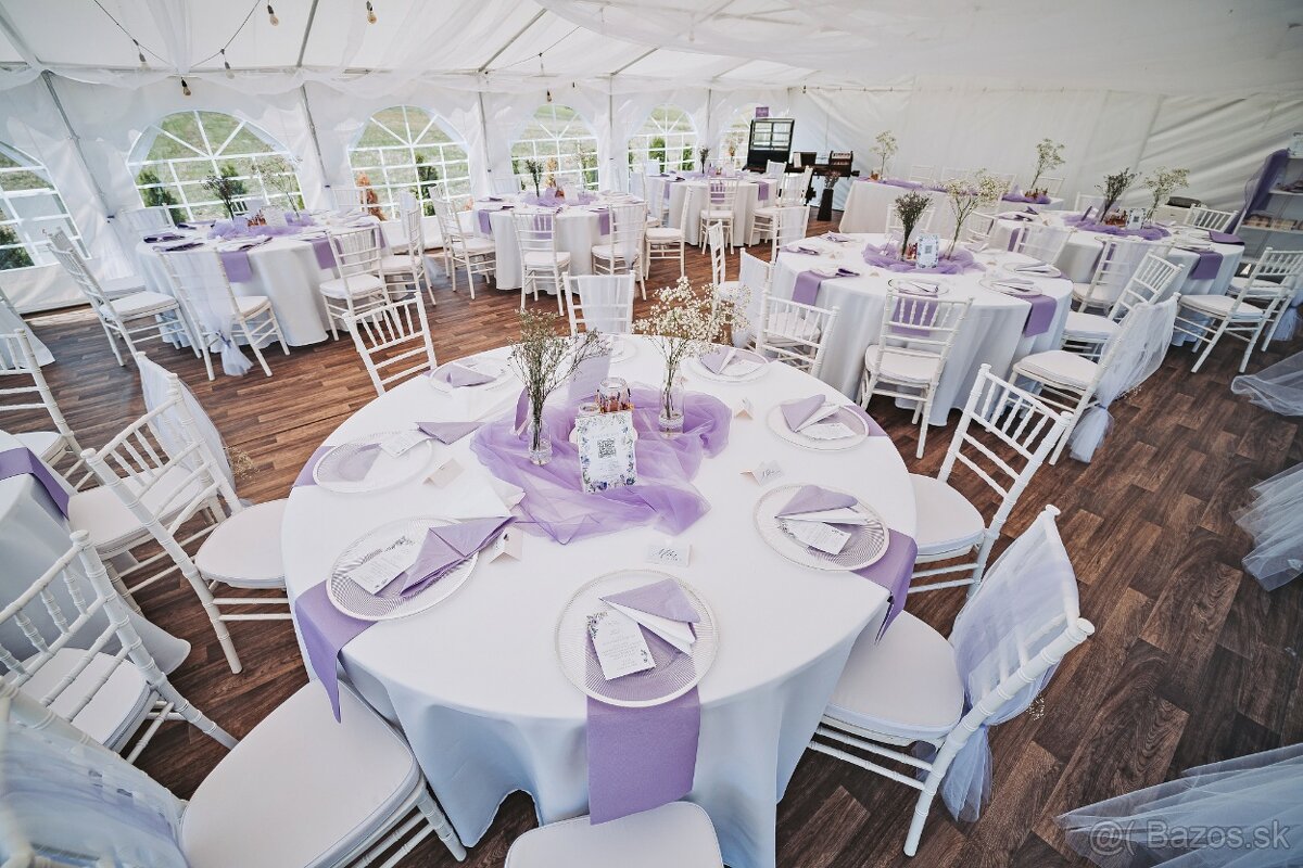 V našom porfóliu nájdete okrúhle stoly, chiavari stoličky, svetelné steny, slavobrány k obrad ...
