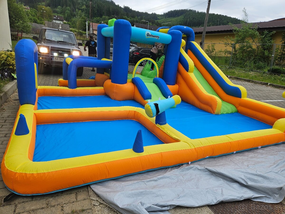 Ponúkam na prenájom, skákací hrad Centrum 7v1, hrad je určený na používanie s vodou aj bez nej.. hrad obsahuje dve šmykľavky, skákaciu plochu, futbalovú bránku, basketbalový kôš, vodné delá, suchý bazén, lezeckú stenu..